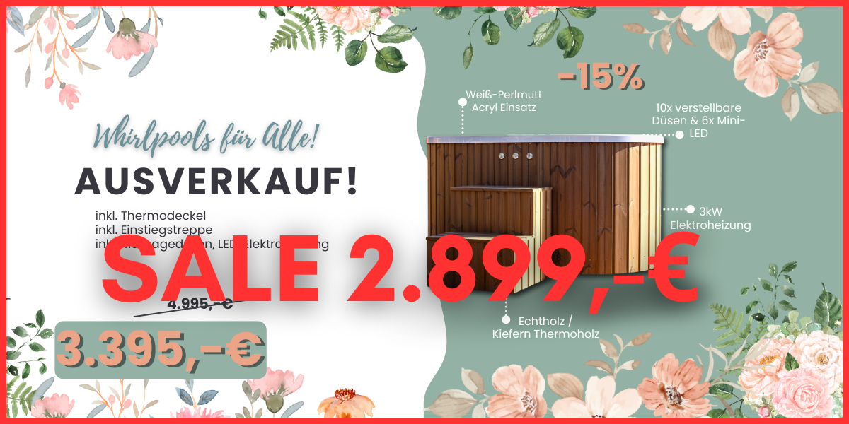 Nutze jetzt unseren Lager-Ausverkauf beim Kauf unseres beliebten Mini Whirlpools muna: