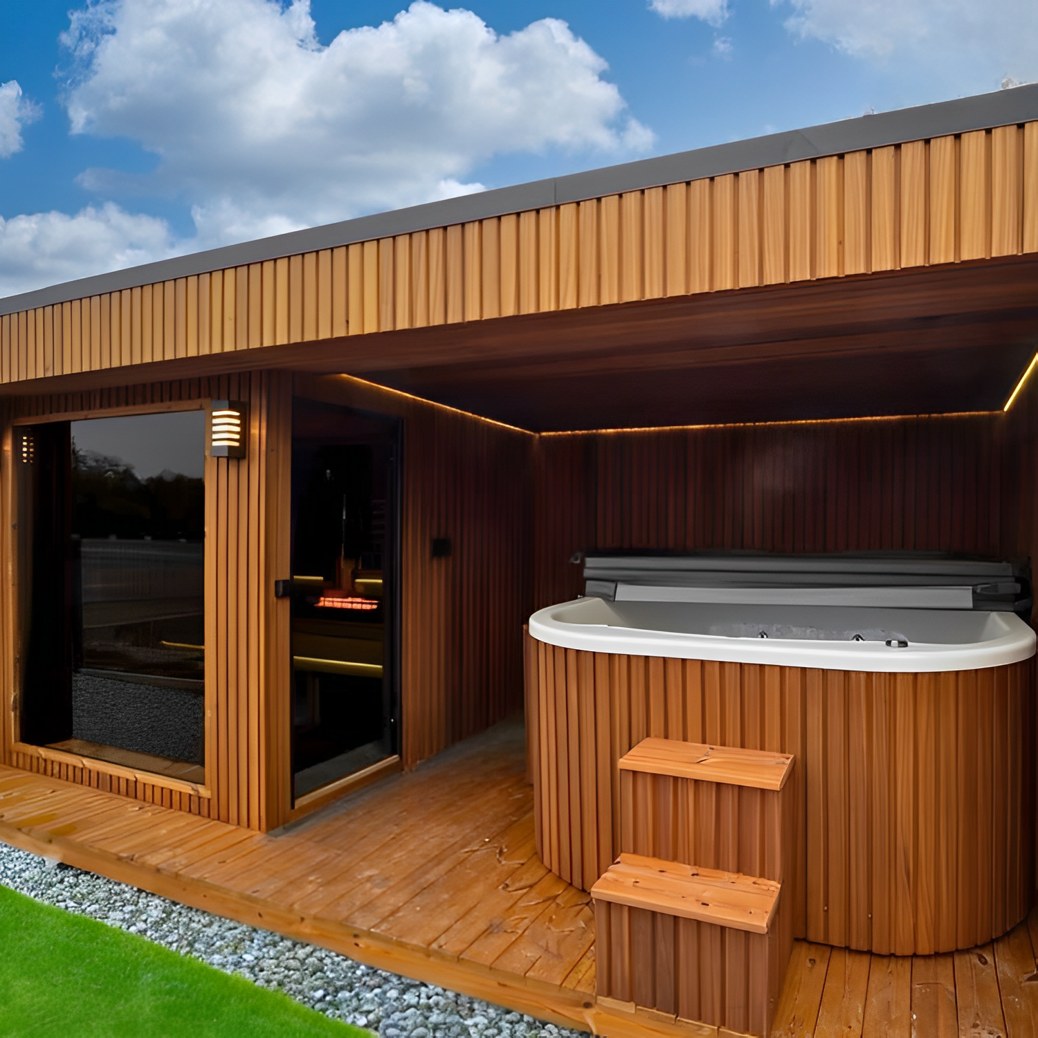 ✓ kompaktes Wellnesshaus mit Sauna- und Ruheraum