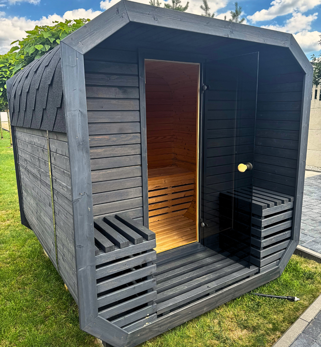 ✓ kompaktes Wellnesshaus mit Sauna- und Ruheraum