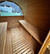 - Zwei Saunabänke aus Holz, verstärkt mit Stützstreben